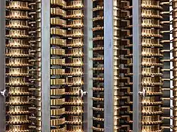 In addition to funding the construction of the output mechanism for the Science Museum's difference engine, Nathan Myhrvold commissioned the construction of a second complete Difference Engine No. 2, which was on exhibit at the Computer History Museum in Mountain View, California, from May 2008 to January 2016.[37][38][39][40] It has since been transferred to Intellectual Ventures in Seattle where it is on display just outside the main lobby.[41][42][43]