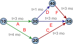 A somewhat different DAG-based formulation of scheduling constraints is used by the program evaluation and review technique (PERT), a method for management of large human projects that was one of the first applications of DAGs. In this method, the vertices of a DAG represent milestones of a project rather than specific tasks to be performed. Instead, a task or activity is represented by an edge of a DAG, connecting two milestones that mark the beginning and completion of the task. Each such edge is labeled with an estimate for the amount of time that it will take a team of workers to perform the task. The longest path in this DAG represents the critical path of the project, the one that controls the total time for the project. Individual milestones can be scheduled according to the lengths of the longest paths ending at their vertices.[33]