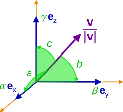 where ex, ey, ez are the standard basis in Cartesian notation, then the direction cosines are