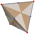 It can be called a disdyakis hexahedron or hexakis tetrahedron as the dual of an omnitruncated tetrahedron, and as the barycentric subdivision of a tetrahedron.[3]
