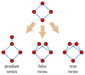 - Replace any vertex of the graph by a pair of vertices, each of which has the same set of neighbors as the replaced vertex. The new pair of vertices are called false twins of each other.