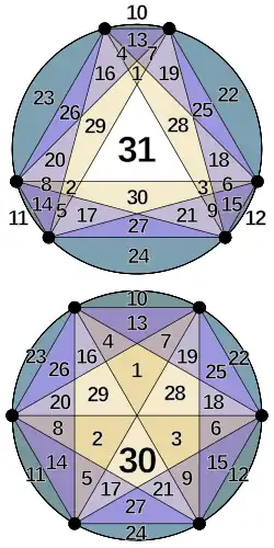 In geometry, the problem of dividing a circle into areas by means of an inscribed polygon with n sides in such a way as to maximise the number of areas created by the edges and diagonals, sometimes called Moser's circle problem (named after Leo Moser), has a solution by an inductive method. The greatest possible number of regions, , giving the sequence 1, 2, 4, 8, 16, 31, 57, 99, 163, 256, ... (OEIS: A000127). Though the first five terms match the geometric progression 2n − 1, it deviates at n = 6, showing the risk of generalising from only a few observations.