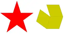 A shape with the same exterior appearance as the dodecadodecahedron can be constructed by folding up these nets: