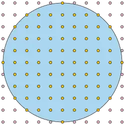 - ↑ Guy, Richard K. (2004), "F1: Gauß's lattice point problem", Unsolved Problems in Number Theory, Problem Books in Mathematics, vol. 1 (3rd ed.), New York: Springer-Verlag, pp. 365–367, doi:10.1007/978-0-387-26677-0, ISBN 0-387-20860-7, MR 2076335