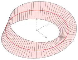 A simple calculation shows (see next section). Hence the given realization of a Möbius strip is not developable. But there exist developable Möbius strips.[3]