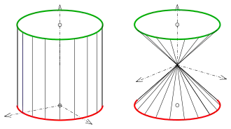 Any straight line with fixed parameter is called a generator. The vectors describe the directions of the generators. The curve is called the directrix of the representation. The directrix may collapse to a point (in case of a cone, see example below).