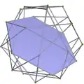 In geometry, a hemipolyhedron is a uniform star polyhedron some of whose faces pass through its center. These "hemi" faces lie parallel to the faces of some other symmetrical polyhedron, and their count is half the number of faces of that other polyhedron – hence the "hemi" prefix.[1]