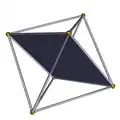 The hemipolyhedra occur in pairs as facetings of the quasiregular polyhedra with four faces at a vertex. These quasiregular polyhedra have vertex configuration m.n.m.n and their edges, in addition to forming the m- and n-gonal faces, also form hemi-faces of the hemipolyhedra. Thus, the hemipolyhedra can be derived from the quasiregular polyhedra by discarding either the m-gons or n-gons (to maintain two faces at an edge) and then inserting the hemi faces. Since either m-gons or n-gons may be discarded, either of two hemipolyhedra may be derived from each quasiregular polyhedron, except for the octahedron as a tetratetrahedron, where m = n = 3 and the two facetings are congruent. (This construction does not work for the quasiregular polyhedra with six faces at a vertex, also known as the ditrigonal polyhedra, as their edges do not form any regular hemi-faces.)[1]