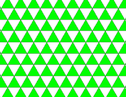 ![]() Triangular tiling | ![]() | ![]() | (3.∞.3.∞.3.∞)/2 | 3/2 | 3 ∞ | p6m |