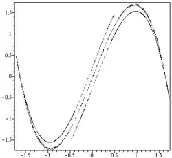 Plot of the Duffing map showing chaotic behavior, where a = 2.75 and b = 0.15.