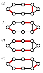 In graph theory, an edge dominating set for a graph G = (V, E) is a subset D ⊆ E such that every edge not in D is adjacent to at least one edge in D. An edge dominating set is also known as a line dominating set. Figures (a)–(d) are examples of edge dominating sets (thick red lines).