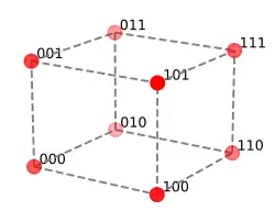 Let be a finite undirected graph. The vertex space of G is the vector space over the finite field of two elements of all functions . Every element of naturally corresponds the subset of V which assigns a 1 to its vertices. Also every subset of V is uniquely represented in by its characteristic function. The edge space is the -vector space freely generated by the edge set E. The dimension of the vertex space is thus the number of vertices of the graph, while the dimension of the edge space is the number of edges.