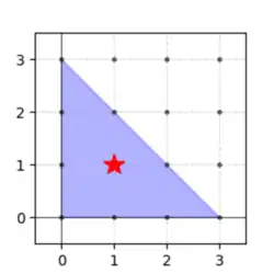 Equality is achieved in this inequality when is a copy of the standard simplex in Euclidean n-dimensional space, whose sides are scaled up by a factor of . Equivalently, is congruent to the convex hull of the vectors , and for all . Presented in this manner, the origin is the only lattice point interior to the convex body K.