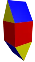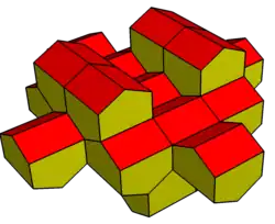 In geometry, the elongated gyrobifastigium or gabled rhombohedron is a space-filling octahedron with 4 rectangles and 4 right-angled pentagonal faces.
