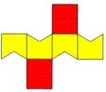 A topologically distinct elongated gyrobifastigium has square and equilateral triangle faces, seen as 2 triangular prisms augmented to a central cube. This is a failed Johnson solid for not being strictly convex.[4]