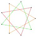 There is also a star figure, {9/3} or 3{3}, made from the regular enneagon points but connected as a compound of three equilateral triangles.[3][4] (If the triangles are alternately interlaced, this results in a Brunnian link.) This star figure is sometimes known as the star of Goliath, after {6/2} or 2{3}, the star of David.[5]