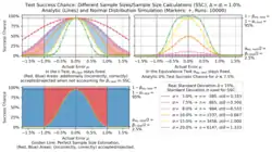 The figure below allows a visual comparison of the equivalence test and the t-test when the sample size calculation is affected by differences between the a priori standard deviation and the sample's standard deviation , which is a common problem. Using an equivalence test instead of a t-test additionally ensures that αequiv.-test is bounded, which the t-test does not do in case that with the type II error growing arbitrary large. On the other hand, having results in the t-test being stricter than the dr specified in the planning, which may randomly penalize the sample source (e.g., a device manufacturer). This makes the equivalence test safer to use.