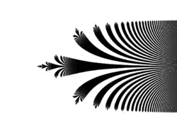 For transcendental entire functions, the escaping set is much more complicated than for polynomials: in the simplest cases like the one illustrated in the picture it consists of uncountably many curves, called hairs or rays. In other examples the structure of the escaping set can be very different (a spider's web).[7] As mentioned above, there are examples of transcendental entire functions whose escaping set contains no curves.[4]