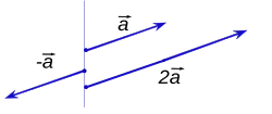If r is negative, then the vector changes direction: it flips around by an angle of 180°. Two examples (r = −1 and r = 2) are given below: