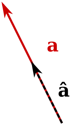 A unit vector is any vector with a length of one; normally unit vectors are used simply to indicate direction. A vector of arbitrary length can be divided by its length to create a unit vector.[14] This is known as normalizing a vector. A unit vector is often indicated with a hat as in â.