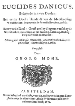 Euclides Danicus (the Danish Euclid) is one of three books of mathematics written by Georg Mohr.[1] It was published in 1672 simultaneously in Copenhagen and Amsterdam, in Danish and Dutch respectively. It contains the first proof of the Mohr–Mascheroni theorem, which states that every geometric construction that can be performed using a compass and straightedge can also be done with compass alone.[2]