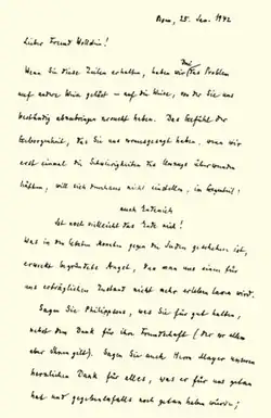 Some of his fellow Jews may have had illusions about the camp Endenich, but not Hausdorff. In the estate of Bessel-Hagen, E. Neuenschwander discovered the farewell letter that Hausdorff wrote to his lawyer Hans Wollstein, who was also Jewish.[8][9] Here is the beginning and end of the letter: