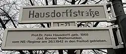 - Memorial "Stolperstein" at Hausdorff's last home, in Bonn