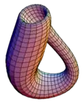A similar nontrivial bundle is the Klein bottle, which can be viewed as a "twisted" circle bundle over another circle. The corresponding non-twisted (trivial) bundle is the 2-torus, .