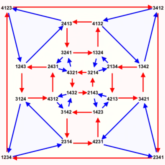 The symmetric group Sn on a finite set of n symbols is the group whose elements are all the permutations of the n symbols, and whose group operation is the composition of such permutations, which are treated as bijective functions from the set of symbols to itself.[4] Since there are n! (n factorial) possible permutations of a set of n symbols, it follows that the order (the number of elements) of the symmetric group Sn is n!.
