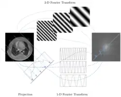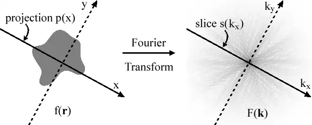 - Take a two-dimensional function f(r), project (e.g. using the Radon transform) it onto a (one-dimensional) line, and do a Fourier transform of that projection.