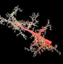 Modeled fractals may be sounds,[14] digital images, electrochemical patterns, circadian rhythms,[46] etc. Fractal patterns have been reconstructed in physical 3-dimensional space[21]: 10 and virtually, often called "in silico" modeling.[43] Models of fractals are generally created using fractal-generating software that implements techniques such as those outlined above.[4][13][21] As one illustration, trees, ferns, cells of the nervous system,[18] blood and lung vasculature,[43] and other branching patterns in nature can be modeled on a computer by using recursive algorithms and L-systems techniques.[18]