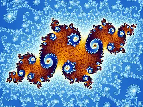 - Escape-time fractals – use a formula or recurrence relation at each point in a space (such as the complex plane); usually quasi-self-similar; also known as "orbit" fractals; e.g., the Mandelbrot set, Julia set, Burning Ship fractal, Nova fractal and Lyapunov fractal. The 2d vector fields that are generated by one or two iterations of escape-time formulae also give rise to a fractal form when points (or pixel data) are passed through this field repeatedly.