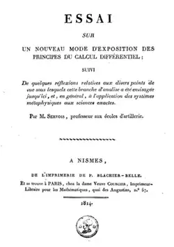 - 1 2 Bradley, Robert E.; Petrilli, Salvatore J. "English Translation of Servois' 1814 \Essay on a New Method of Exposition of the Principles of Differential Calculus" (PDF). Mathematical Association of America.