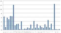 Frequency analysis is based on the fact that, in any given stretch of written language, certain letters and combinations of letters occur with varying frequencies. Moreover, there is a characteristic distribution of letters that is roughly the same for almost all samples of that language. For instance, given a section of English language, E, T, A and O are the most common, while Z, Q, X and J are rare. Likewise, TH, ER, ON, and AN are the most common pairs of letters (termed bigrams or digraphs), and SS, EE, TT, and FF are the most common repeats.[1] The nonsense phrase "ETAOIN SHRDLU" represents the 12 most frequent letters in typical English language text.