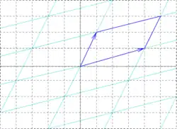 This lattice is also sometimes denoted as to make clear that it depends on and It is also sometimes denoted by or or simply by The two generators and are called the lattice basis. The parallelogram with vertices is called the fundamental parallelogram.