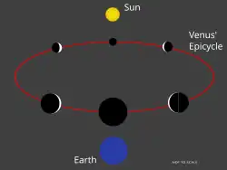 From September 1610, Galileo observed that Venus exhibits a full set of phases similar to that of the Moon. The heliocentric model of the Solar System developed by Nicolaus Copernicus predicted that all phases would be visible since the orbit of Venus around the Sun would cause its illuminated hemisphere to face the Earth when it was on the opposite side of the Sun and to face away from the Earth when it was on the Earth-side of the Sun. In Ptolemy's geocentric model, it was impossible for any of the planets' orbits to intersect the spherical shell carrying the Sun. Traditionally, the orbit of Venus was placed entirely on the near side of the Sun, where it could exhibit only crescent and new phases. It was also possible to place it entirely on the far side of the Sun, where it could exhibit only gibbous and full phases. After Galileo's telescopic observations of the crescent, gibbous and full phases of Venus, the Ptolemaic model became untenable. In the early 17th century, as a result of his discovery, the great majority of astronomers converted to one of the various geo-heliocentric planetary models, such as the Tychonic, Capellan and Extended Capellan models,[e] each either with or without a daily rotating Earth. These all explained the phases of Venus without the 'refutation' of full heliocentrism's prediction of stellar parallax.[69][70]