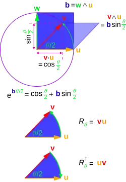 A -versor is a multivector that can be expressed as the geometric product of invertible vectors.[g][21] Unit quaternions (originally called versors by Hamilton) may be identified with rotors in 3D space in much the same way as real 2D rotors subsume complex numbers; for the details refer to Dorst.[22]