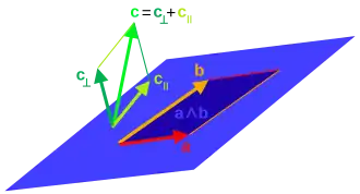 Geometric algebra represents subspaces of as blades, and so they coexist in the same algebra with vectors from . A -dimensional subspace of is represented by taking an orthogonal basis and using the geometric product to form the blade . There are multiple blades representing ; all those representing are scalar multiples of . These blades can be separated into two sets: positive multiples of and negative multiples of . The positive multiples of are said to have the same orientation as , and the negative multiples the opposite orientation.