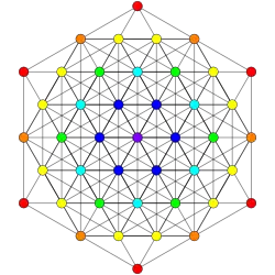 | A6A1 | { } | f1 | 2 | 69120 | 21 | 105 | 35 | 140 | 35 | 105 | 21 | 42 | 7 | 7 | r{3,3,3,3,3} | E8/A6A1 = 192*10!/7!/2 = 69120 | |