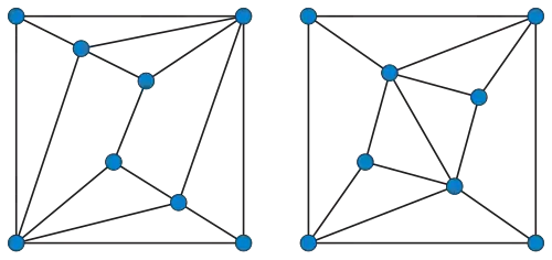 The smallest pair of polyhedral cospectral mates are enneahedra with eight vertices each.[3]