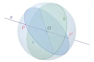 In mathematics, a great circle or orthodrome is the circular intersection of a sphere and a plane passing through the sphere's center point.[1][2]