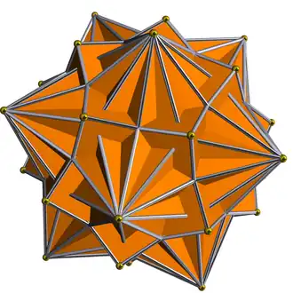 In geometry, the great dodecacronic hexecontahedron (or great lanceal ditriacontahedron) is a nonconvex isohedral polyhedron. It is the dual of the uniform great dodecicosidodecahedron. Its 60 intersecting quadrilateral faces are kites. Part of each kite lies inside the solid, hence is invisible in solid models.
