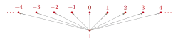 it is made a partially ordered set by defining for each and letting any two different members be uncomparable w.r.t. , see picture.