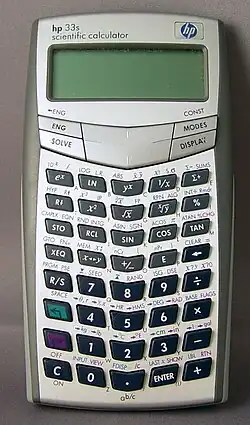 The HP 33s (F2216A) was a scientific calculator marketed by Hewlett-Packard. It was introduced in 2003 as the successor to the HP 32SII,[1] and discontinued on the introduction of its successor, the HP 35s in 2007.