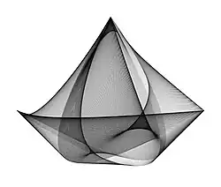 Hamid Naderi Yeganeh (Persian: حمید نادری یگانه; born 26 July 1990, in Iran[1]) is an Iranian mathematical artist and digital artist.[2][3][4] He is known for using mathematical formulas to create drawings of real-life objects, intricate and symmetrical illustrations, animations, fractals and tessellations.[5][6][7][8][9] Naderi Yeganeh uses mathematics as the main tool to create artworks.[10] Therefore, his artworks can be totally described by mathematical concepts.[11][2][12] Mathematical concepts he uses in his work include trigonometric functions, exponential function, Fibonacci sequence, sawtooth wave, etc.[13][14][15][16][17]