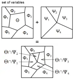 What is most important is that when the values assigned to do not conflict with the values prescribed by , making "disappear" when all variables not in are fixed to the values from . Fixing all variables not in to the values from gives