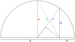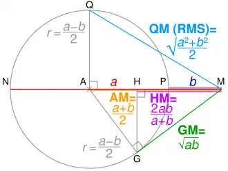 - ↑ If NM = a and PM = b. AM = AM of a and b, and radius r = AQ = AG.