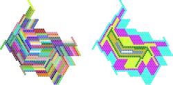 - ↑ Fontaine, Anne (1991). "An infinite number of plane figures with Heesch number two". Journal of Combinatorial Theory. Series A. 57 (1): 151–156. doi:10.1016/0097-3165(91)90013-7..