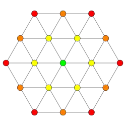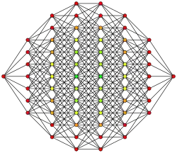 ![]() Orthogonal projection inside Petrie polygon The central orange vertex is doubled | |