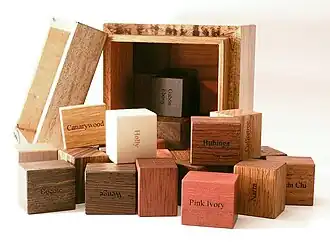 Hoffman's packing puzzle is an assembly puzzle named after Dean G. Hoffman, who described it in 1978.[1] The puzzle consists of 27 identical rectangular cuboids, each of whose edges have three different lengths. Its goal is to assemble them all to fit within a cube whose edge length is the sum of the three lengths.[2][3]